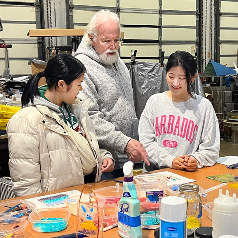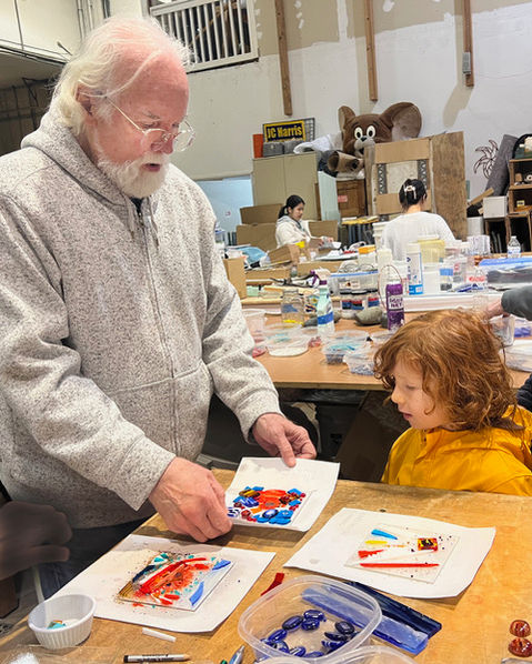 The International Sculpture Day event at George C. Scott Studios featured glass sculpture making projects for youth and parents. George C.Scott, famous glass artist, personally conducted the hands-on sessions! Also featured was sculpture projects outside for kids of all ages, using wood, beads, and other materials.